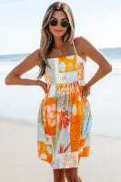 Orange Seashell Patchwork Print Self-tie Flowy Sundress